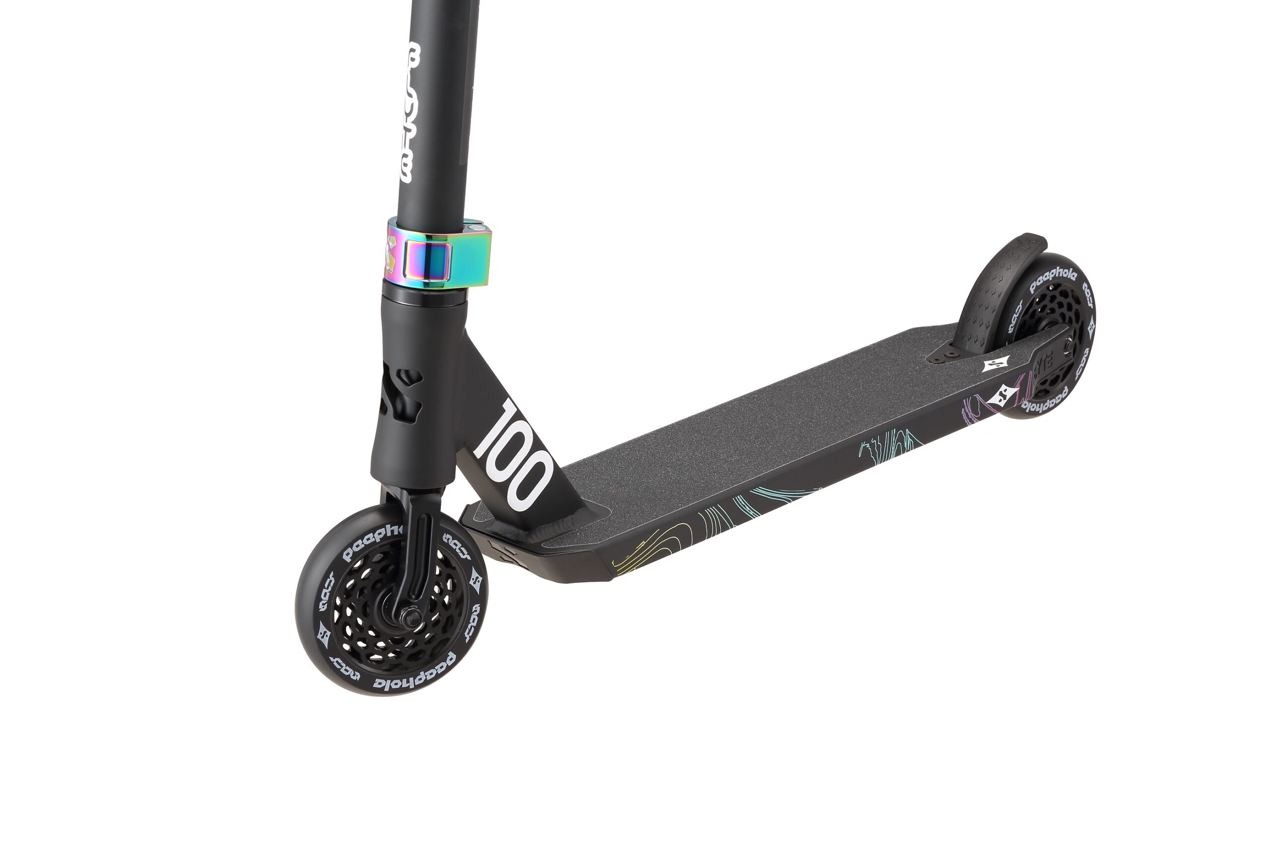 Grip tape: Custom made grip tape cut perfectly to the shape of the Flyte 100 deck